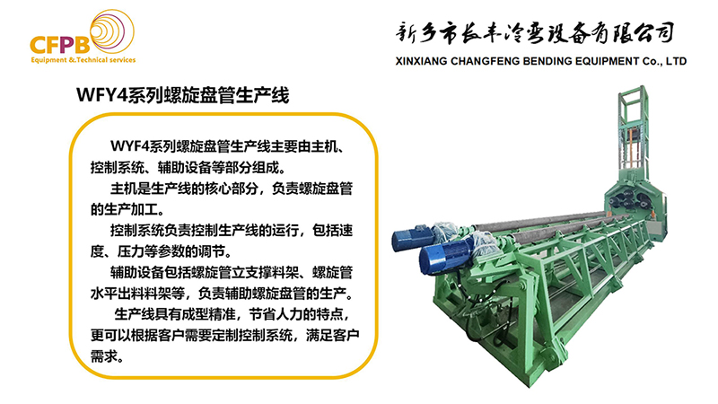 螺旋盤管生產(chǎn)線是我廠目前機械設備銷售的主要業(yè)務板塊,已為國內多為位鍋爐廠、壓力容器制造企業(yè)進行了生產(chǎn)線設備配套和技術服務。我廠擁獨立開發(fā)的WFY4系列盤管生產(chǎn)線,和擁有專利技術的WFY7系列阿基米德螺旋型扁平管生產(chǎn)線,為盤管生產(chǎn)節(jié)約了大量校正時間和人力物力,受到客戶的一致好評。