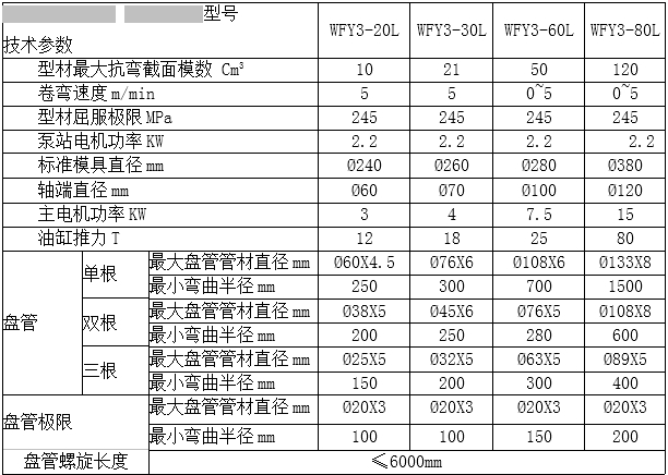 WFY3-20L/30L/60L/80L三輥盤(pán)管機(jī)參數(shù)
